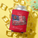 Proud Patriotic Farmer riding a vintage, nostalgic tractor against a weathered waving American flag Flag to customise, personalise by changing to your name