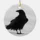 A Common Raven stands proudly against a snowy white background. The Raven is the official bird of the Yukon Territory, in northern Canada.