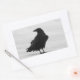 A Common Raven stands proudly against a snowy white background. The Raven is the official bird of the Yukon Territory, in northern Canada.