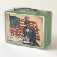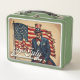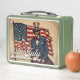 This is a standard metal lunchbox that appears to work just fine. We designed this box ourselves with an uploaded photo and custom text on the front and back. It looks absolutely beautiful except the front of the lunchbox is not centered like it shows in the photo. The print borders don't align with the inset flat part of the box where the preview photo online showed it perfectly centered in there. The back looks nice and centered though.