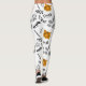 Drawing of a tiger face of black and orange colours. Some scars and tiger footsteps. Text Proud tiger tamer. One of a kind funny woman's, female leggings for fun and good mood.