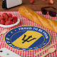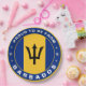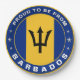 The national flag of Barbados is infused into a circle shape which itself, is colored in the flag colors. Along with decorative stars, there is the proud, patriotic text.