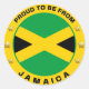 The national flag of Jamaica is infused into a circle shape which in turn, is decorated in the national flag colors. The added text is show a persons pride and patriotism in being Jamaican.