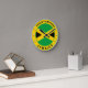 The clock did not take as long to arrive as I thought it might and was extremely well packaged. I didn't do the measurements so I didn't realize it is a little smaller than the average clock but that does not matter (just make sure you check if that's important to you).It is really nifty! It seems very solid and well made not flimsy at all. It has been going well and has kept good time in its few weeks on my wall. Nice product. Gets noticed too! Nicer in real life than the picture but true to the picture