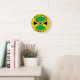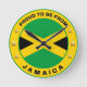 The national flag of Jamaica is infused into a circle shape which in turn, is decorated in the national flag colours. The added text is show a persons pride and patriotism in being Jamaican.