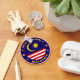 The national flag of Malaysia is infused into a circle shape which in itself, is decorated in the flag colours. Aside from the text, there are also decorative stars used as dividers.