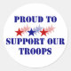 "Proud To Support Our Troops is a must have sticker design. This Multi-Branch design features red and blue shooting stars and bold blue and red text featuring the words "Proud To Support Our Troops". Lets show our military we have their backs!"