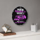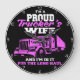 This loving wall clock is a proud declaration from a dedicated trucker's wife. Against a black background with a vibrant pink rim, it features a semi-truck in shades of pink. The prominent text "I'M A PROUD Trucker's WIFE AND I'M IN IT FOR THE LONG HAUL" celebrates her unwavering support and commitment. It's a perfect gift to honour the strength and love of a trucker's partner. The design tool can also be used to add custom text if you want your name or company on this clock. You can customise the colour of the frame to any colour you desire by going into the design tool.