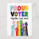 Be a proud voter! The lettering says, “Proud Voter. Together, love wins!” And the rainbow-coloured hands underneath represent the diversity of the Quasar progress pride flag. The policies that protect our rights and the rights of those we love depend on the actions of people in office. How do they get there? We vote them in! Show up, cast your ballot, and encourage your friends to do the same. Even in the smallest local election, there’s just too much at stake to sit it out. Use your voice, exercise your power, and make a difference. Vote like your rights depend on it — because they do!