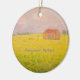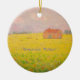 A flower field of sunflowers with a stone cottage from a original painting. also with "provence france" slogan