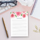 Chic personalized design features a top border of pink and red watercolor roses, with your name or choice of personalization in handwritten brush lettering. Lined.