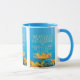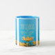 This two-tone mug features a chalga light print font with white letters yellow outline showcasing the "Proverbs 1:7 KJV" bible scripture verse over a background picture displaying a upclose view of a dual colored yellow flower with green petals and stems over a aqua blue back in this floral theme. This verse is referencing the Book Of Proverbs 1st chapter showing the 7th verse in this bible scripture quote theme from the King James bible. The rim & handle are glazed in matching colors available in 11-ounce or 15-ounce sizes microwave and dishwasher safe ceramic construction.
