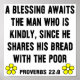 Reads," A blessing awaits the man who is kindly, since he shares his bread with the poor." Words of wisdom from the Book of Proverbs 22:9 in the Bible. Wonderful gift for your favourite Christian or anyone who thinks in a spiritual way. Great for birthdays, Christmas, Father's Day, Mother's Day, or any special day.