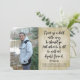 Popular parenting Bible verse from Proverbs 22:6... Train up a child in the way he should go, And when he is old he will not depart from it. Bible verse scripture in a beautiful handwritten brush font. Vintage rustic parchment paper style background with fancy script text, features your photo, Inspiring and artistic modern Christian religious, Church private school or home-schooled graduation announcement with wise advice for the high school or college student. Include details of your reception or party event on back.