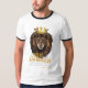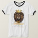 This mens ringer t-shirt features a dual bold print font with yellow and white letters displaying the "Proverbs 30:30" bible verse scripture and citation with the face of a lion wearing a king's crown above in the faith based theme. This tee has a vintage-inspired look featuring contrasting cuffs and neckline for a sporty yet casual look.