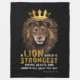 This fleece blanket features a dual bold print font with yellow and white letters displaying the "Proverbs 30:30" bible verse scripture and citation with the face of a lion wearing a king's crown above in the faith based theme. This Blanket is made from 100% buttery soft and cosy polyester fleece with edge-to-edge vibrant full colour sublimation printing and double edge stitching with a off-white coloured back machine washable.