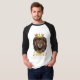 This 3/4 sleeve t-shirt features a dual bold print font with yellow and white letters displaying the "Proverbs 30:30" bible verse scripture and citation with the face of a lion wearing a king's crown above in the faith based theme. These have a white or ash body with matching sleeves and collar with double-needle stitched bottom & sleeve hems for long lasting durability.