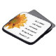 This feminine Bible verse laptop sleeve shows half a sunflower photo with the words of Proverbs 31:25 next to the flower. The words are easy to personalise and adjust to your favourite Bible verse or motivational saying. Proverbs 31:25 talks about how the ideal Christian woman is comfortable in her life now, dignified with no worries, and prepared for whatever the future brings. "She is clothed with strength and dignity; she can laugh at the days to come. Proverbs 31 :25"
