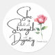 She is clothed with strength and dignity - Proverbs 31:25 Bible Verse with Single Rose Flower Design. A great bible scripture for all women.