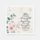 Inspirational quote scripture napkin depicts a beautiful floral design with pink flowers and blue leaves. It features Bible Verse Proverbs 31:25, "She is clothed with strength and dignity and she laughs without fear of the future." *