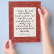 This country print features a vibrant red backdrop adorned with delicate white flowers and botanicals. At the heart of the artwork lies the uplifting Bible verse from Proverbs 3:5-6 KJV (King James Version), beautifully scripted to inspire strength and reassurance. Ideal for a cosy living space, a serene prayer corner, bible study stationery, it serves as a daily reminder of divine guidance and support.