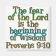 The fear of the Lord is the beginning of wisdom Proverbs 9:10