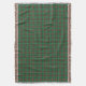 Throw blanket with the province of Newfoundland tartan, from 1973. Traditional plaid pattern in shades of green and brown, with red and white highlights.