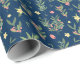 Prussian Blue, Green & Salmon Olive Branch Pattern Wrapping Paper