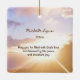 Inspirational scripture personalised ceramic ornament depicts a girl looking at a beautiful sunset over the mountains. It features Bible Verse Psalm 121:1-2, "I lift up my eyes to the mountains- where does my help come from? My help comes from the LORD." Customise the back with a name, date and greeting or the details of your choice.~