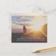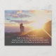 Inspirational scripture postcard depicts a girl looking at a beautiful sunset over the mountains. It features Bible Verse Psalm 121:1-2, "I lift up my eyes to the mountains- where does my help come from? My help comes from the LORD, the Maker of heaven and earth."~