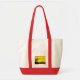 Love the durable cream colored canvas and navy blue contrasted handles. Perfect for carrying my laptop and papers.