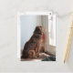 A dog sits quietly at a window on this postcard, featuring bible verse Psalm 130:5.