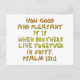 How good and pleasant it is when brothers live together in unity. Psalm 133:1