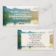 Inspirational quote scripture business card depicts a beautiful nature photograph of a lake surrounded by mountains. It features a portion of the beloved 23rd Psalm verses 1-3, "The LORD is my shepherd; I shall not want... He leads me beside still waters. He restores my soul."_