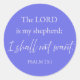 A minimalist Christian sticker featuring the Bible verse Psalm 23:1 with the highlighted phrase “I shall not want” in elegant script lettering, set in a soft blue faith-inspired design.