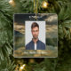 This is a lovely ornament, and great that you personalise the back with details of birthday, weight, etc.. My only tiny disappointment is the "My First" doesn't stand out very well on the background. More than happy with the printing of the photo and the writing on the back.