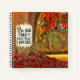 Inspirational scripture notebook, journal depicts a beautiful autumn nature scene with a large tree trunk and red and yellow fall leaves. It features a portion of Bible Verse Psalm 46:10, "Be Still and Know I Am God."