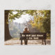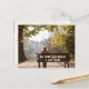 This custom postcard features a woman sitting on a park bench enjoying a beautiful autumn scene with Bible verse Psalm 46:10, Be still and know I am God. The back greeting can be modified to the details of your choice.