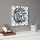 This striking square wall clock features a majestic lion with a flowing mane in shades of black, white, and teal, emerging from a watercolor background. The powerful scripture "Be Still and Know That I Am God" from Psalm 46:10 is elegantly overlaid, creating an inspiring and serene piece of spiritual art.