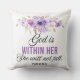 God is within her; she will not fall. - Psalm 46:5 Bible Scripture with Purple Flower Design.