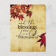 Inspirational Thanksgiving postcard depicts a branch of beautiful red Japanese Maple leaves with a background of parchment paper. It features a portion of Bible Verse Psalm 90:17, "And the blessings of the Lord rested upon us." The back greeting can be customized and the card used for many occasions.*