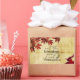 Inspirational sticker depicts a branch of beautiful red Japanese Maple leaves with a background of parchment paper. It features a portion of Bible Verse Psalm 90:17, "And the blessings of the Lord rested upon us."