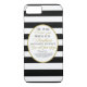 iPhone case with the scripture verse Psalm 91:4. Background is black and white stripe with black and gold lettering.