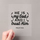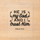 Minimalist yet powerful Bible verse typography based on Psalm 91:2, declaring “He is my God and I trust Him.” Perfect for Christian apparel, church merch, faith stickers, and home wall art.