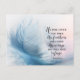 Inspirational quote postcard depicts a blue feather and features Bible Verse Psalm 91:4, "He will cover you with his feathers and under his wings you will find refuge."-