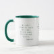This two-tone mug features a bebas neue print font with green letters displaying the "Psalms 121:2 KJV" bible scripture verse over a white background. This verse is referencing the Book Of Psalms 121st chapter showing the 2nd verse in this bible scripture quote theme from the King James bible. The rim & handle are glazed in matching colours available in 11-ounce or 15-ounce sizes microwave and dishwasher safe ceramic construction.