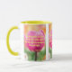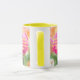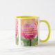 This mug shows the "Psalms 1:2" KJV bible scripture verse in a bold print font with neon yellow letters plus bible citation over a picture of a pink rose with a floral background in this biblical verse and theme from the King James bible. The rim & handle are glazed in matching colours available in 11-ounce or 15-ounce sizes microwave and dishwasher safe ceramic construction.