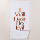 This beach towel displays the Psalms 23:4 KJV bible verse scripture "I Will Fear No Evil" in a unique print font with orange letters black outline plus bible citation. The front of this towel is a polyester blend, the back is 100% cotton with vibrant sublimation printing that is designed to last. Enjoy this towel for your next picnic, beach getaway or any outdoor activity you may attend all towels are machine washable with recommended low speed tumble dry.