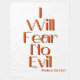 This fleece blanket displays the Psalms 23:4 KJV bible verse scripture "I Will Fear No Evil" in a unique print font with orange letters black outline plus bible citation. This Blanket is made from 100% buttery soft and cosy polyester fleece with edge-to-edge vibrant full colour sublimation printing and double edge stitching with a off-white coloured back machine washable.