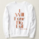 This women's sweatshirt displays the Psalms 23:4 KJV bible verse scripture "I Will Fear No Evil" in a unique print font with orange letters black outline plus bible citation. This sweatshirt is made from 100% cotton this shirt is both plush and durable which make a great combination with a smaller matching image printed on the back.